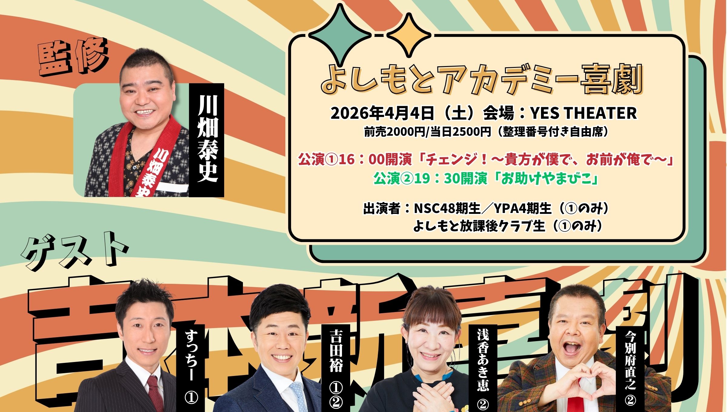 イエスシアターにて今年もよしもとアカデミー喜劇を2公演開催いたします!